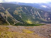 A trail from the hut Dom Śląski to the top of Śnieżka mountain.