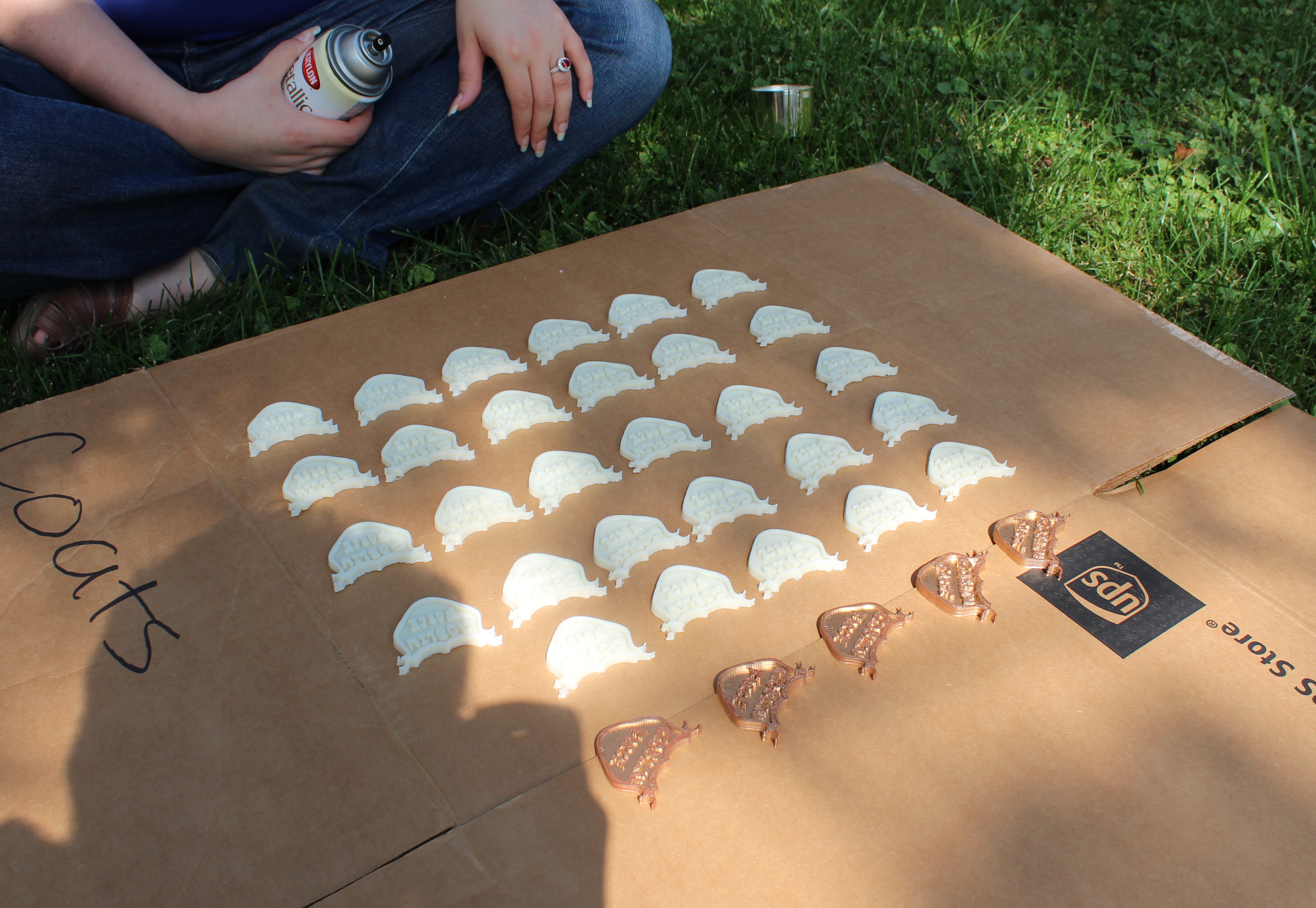 Those Goblin Force badges were all spray-painted gold and then hand touched-up (!!!) by my awesome spouse Morgan. Here we've got a few that were already done that needed a bit of touch up.