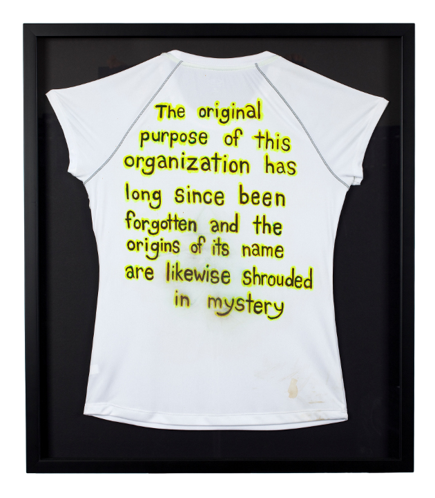 fabric paint on polyester shirt, 26.5 inches x 30.5 inches (framed), 2011