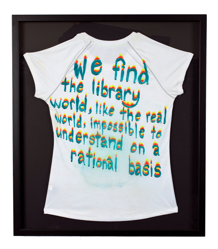 fabric paint on polyester shirt, 26.5 inches x 30.5 inches (framed), 2011