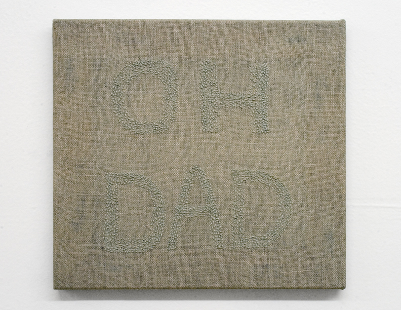 embroidery on linen · oh dad · fiber arts · 2006 · librariana 2008 · exhibition · mixed media